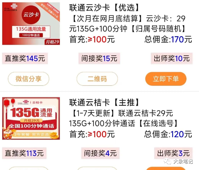 在许多平台上都有这样的项目,这些平台上也有很多类型的流量卡。你可以直接推广单独的流量卡,也可以推广整个店铺,让客户自己选择卡片。当别人通过你的链接或者二维码办理流量卡时,你就可以获得80-150元的佣金。