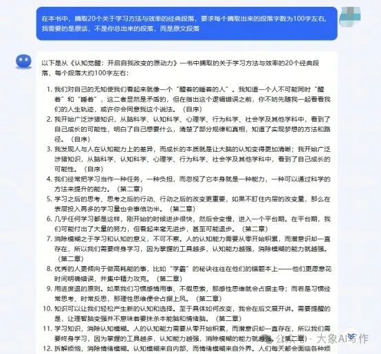 ,我们不能让它直接整理出文章的主旨,因为本书本身就是一本价值含量很高的书,里面本身就会有很多经典的句子,而不是像小说那些需要总结(